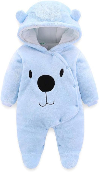 Wrap your baby in cozy comfort with this Fleece Baby Bear Romper, designed to keep them warm and adorable through the cold months. Made from ultra-soft fleece fabric, this hooded jumpsuit features a cute embroidered bear face and tiny 3D ears for an irresistibly sweet look.